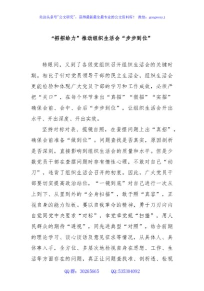 / “招招给力”推动组织生活会“步步到位”