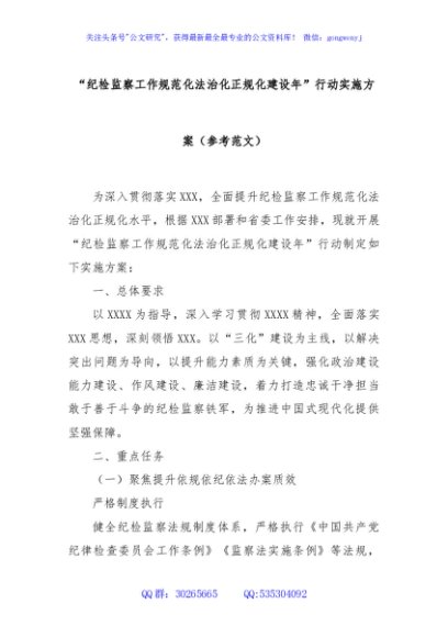 / “纪检监察工作规范化法治化正规化建设年” 行动实施方案(参考范文)