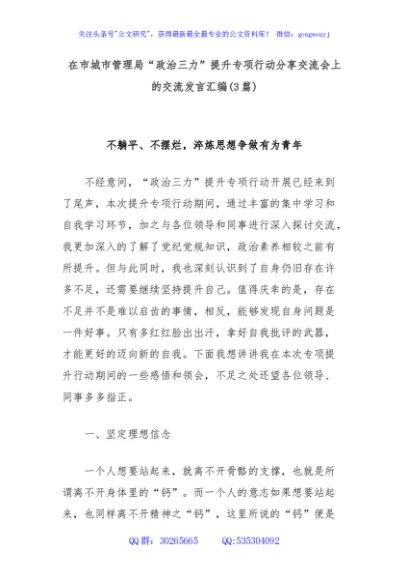 (3篇)在市城市管理局“政治三力”提升专项行动分享交流会上的交流发言汇编