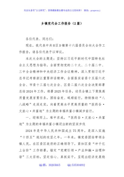 (2篇)乡镇党代会工作报告