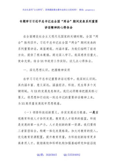 / 专题学习习近平总书记在全国“两会”期间发表系列重要讲话精神的心得体会