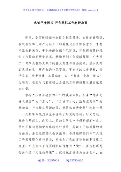 / 忠诚干净担当 开创组织工作崭新局面