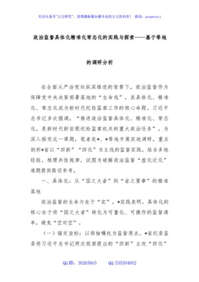 / 政治监督具体化精准化常态化的实践与探索——基于等地的调研分析