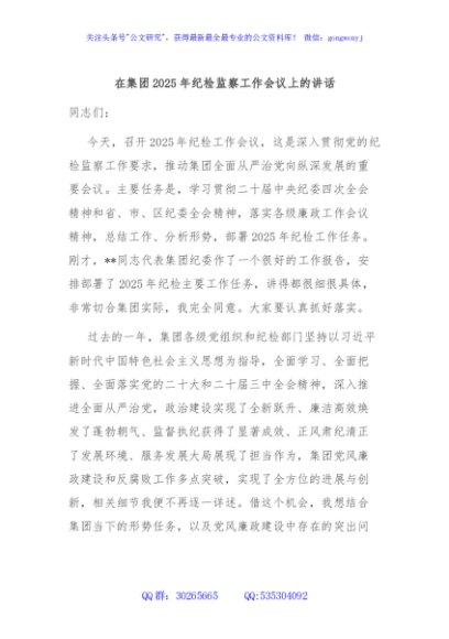在集团2025年纪检监察工作会议上的讲话:深化纪检监督工作,护航集团高质量发展