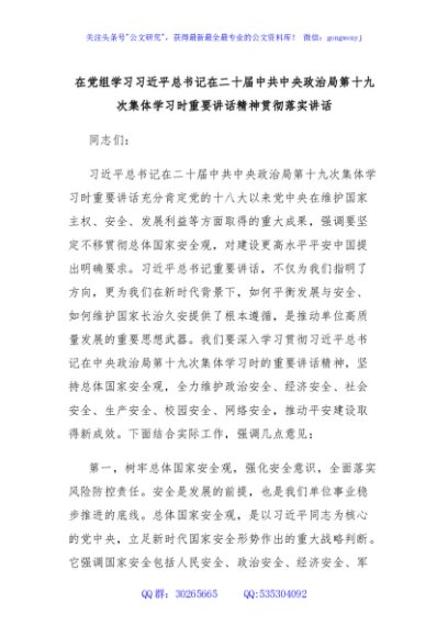/ 在党组学习习近平总书记在二十届中共中央政治局第十九次集体学习时重要讲话精神贯彻落实讲话