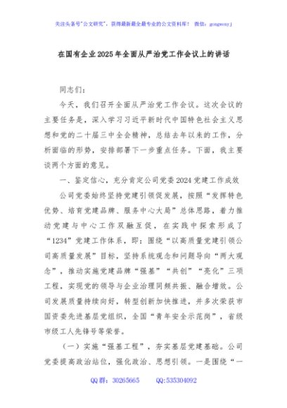 / 在国有企业2025年全面从严治党工作会议上的讲话