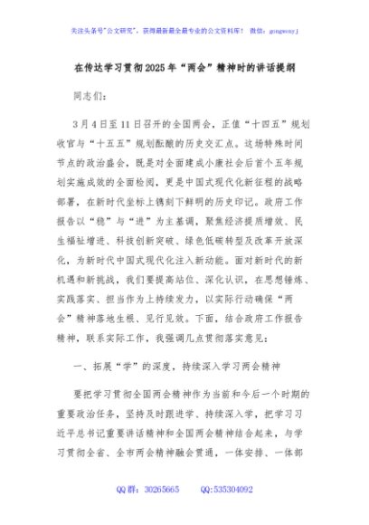 / 在传达学习贯彻2025年“两会”精神时的讲话提纲