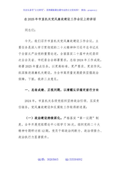 / 在2025年市直机关党风廉政建设工作会议上的讲话