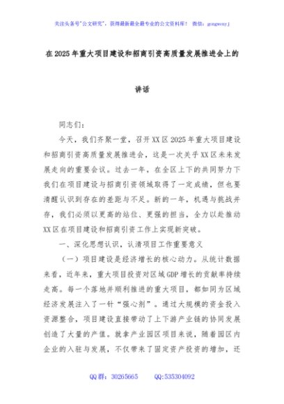/ 在2025年重大项目建设和招商引资高质量发展推进会上的讲话