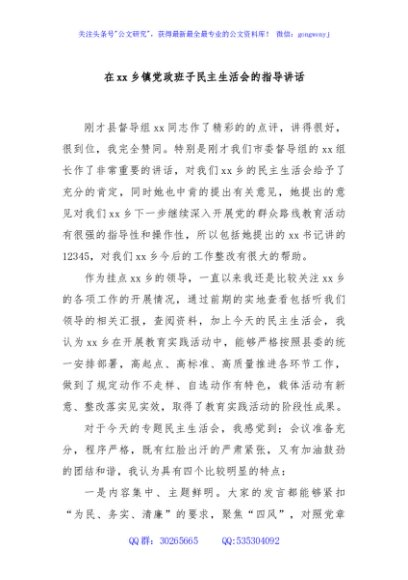 / 在xx乡镇党政班子民主生活会的指导讲话