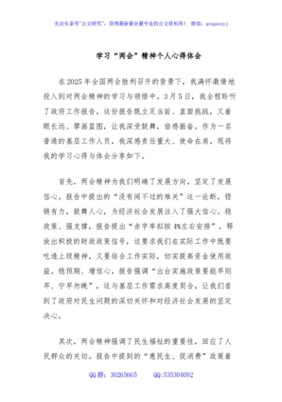 / 基层工作人员学习2025“两会”精神个人心得体会