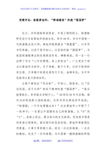/ 党建评论:致敬黄旭华:“耕海踏浪”织就“强国梦”
