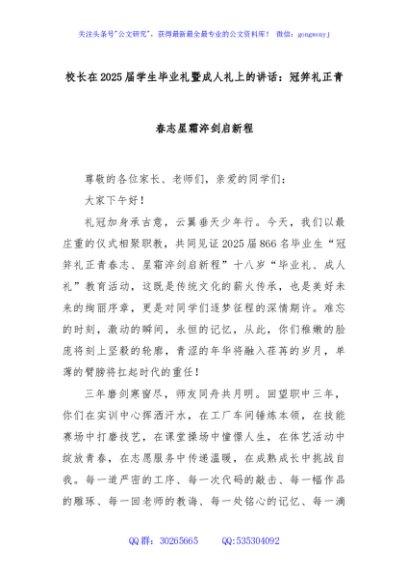 / 校长在2025届学生毕业礼暨成人礼上的讲话:冠笄礼正青春志星霜淬剑启新程
