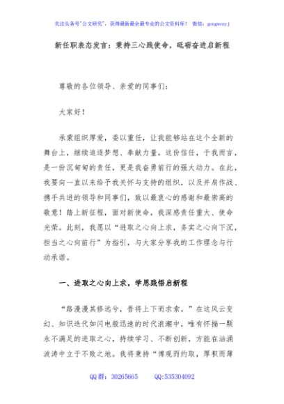 / 新任职表态发言:秉持三心践使命,砥砺奋进启新程