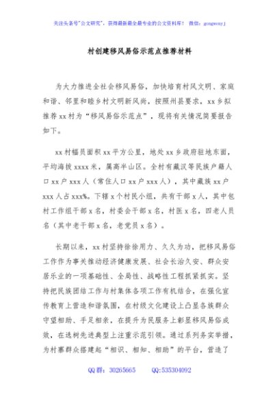 / 村创建移风易俗示范点推荐材料