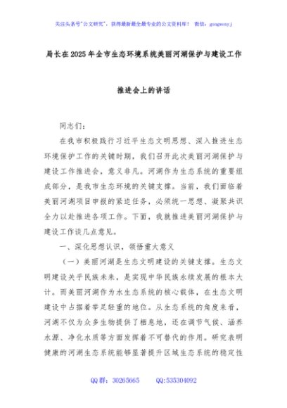 / 局长在2025年全市生态环境系统美丽河湖保护与建设工作推进会上的讲话
