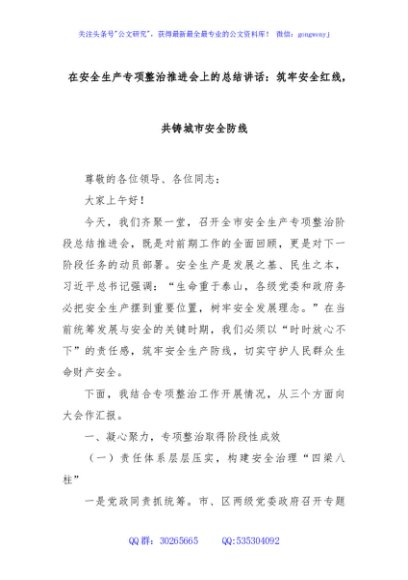 / 在安全生产专项整治推进会上的总结讲话:筑牢安全红线,共铸城市安全防线