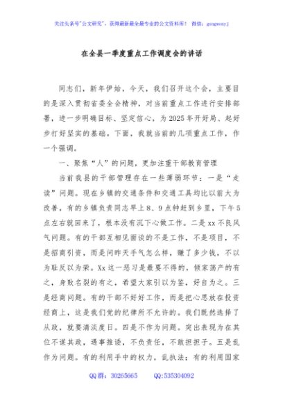 / 在全县一季度重点工作调度会的讲话