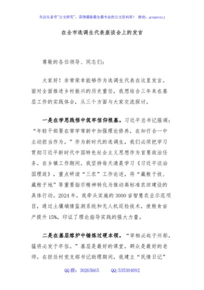 / 在全市选调生代表座谈会上的发言