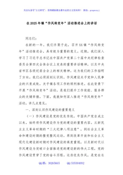 / 在2025年镇“作风转变年”活动推进会上的讲话