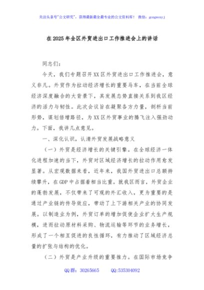 / 在2025年全区外贸进出口工作推进会上的讲话
