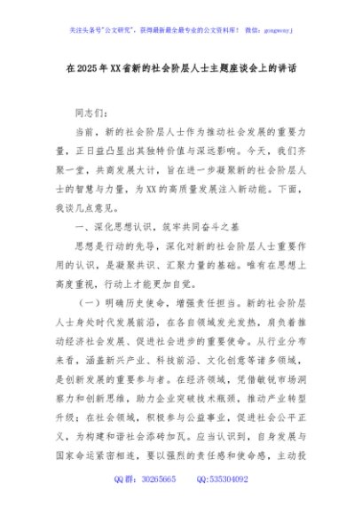 / 在2025年XX省新的社会阶层人士主题座谈会上的讲话