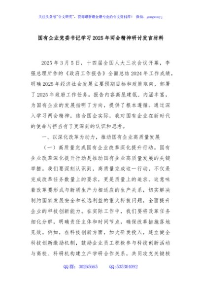 / 国有企业党委书记学习2025年两会精神研讨发言材料