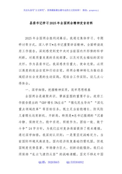 国有企业党委书记学习2025年两会精神研讨发言材料