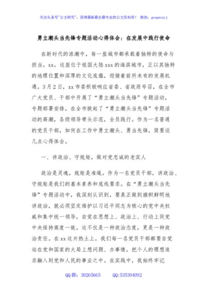 / 勇立潮头当先锋专题活动心得体会:在发展中践行使命