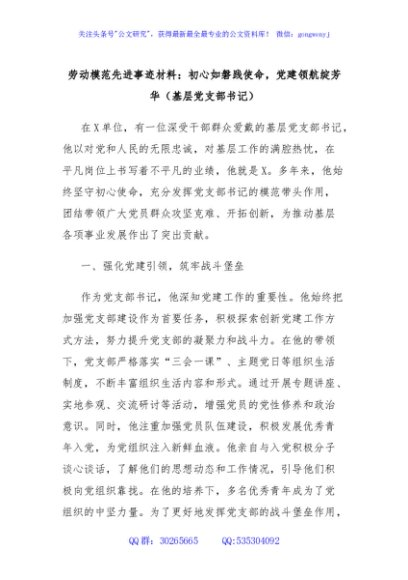 / 劳动模范先进事迹材料:初心如磐践使命,党建领航绽芳华(基层党支部书记)
