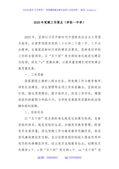 / 2025年党建工作要点(学校—中学)