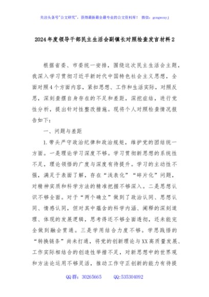 / 2024年度领导干部民主生活会副镇长对照检查发言材料2