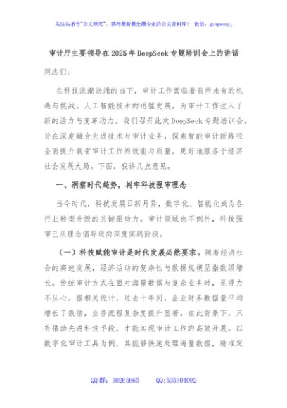 / 审计厅主要领导在2025年DeepSeek专题培训会上的讲话