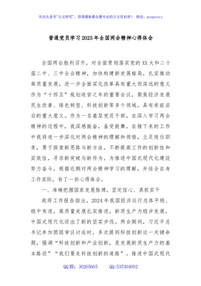 / 普通党员学习2025年全国两会精神心得体会