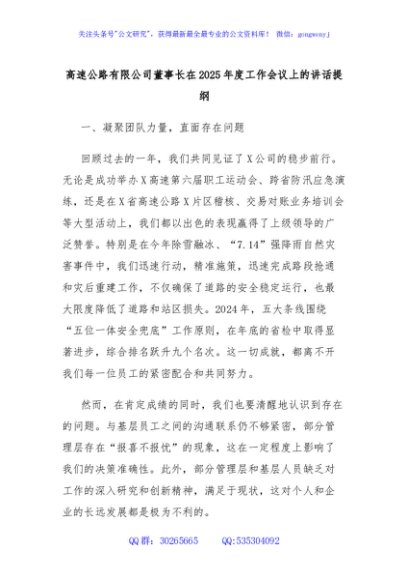 / 高速公路有限公司董事长在2025年度工作会议上的讲话提纲