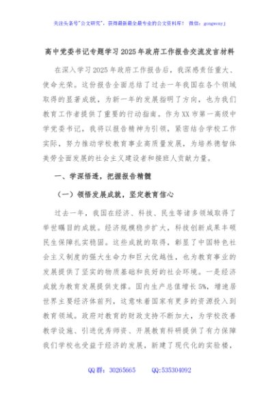 / 高中党委书记专题学习2025年政府工作报告交流发言材料
