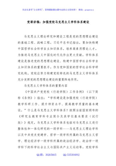 / 党课讲稿:加强党校马克思主义学科体系建设