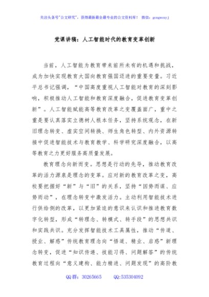 / 党课讲稿:人工智能时代的教育变革创新