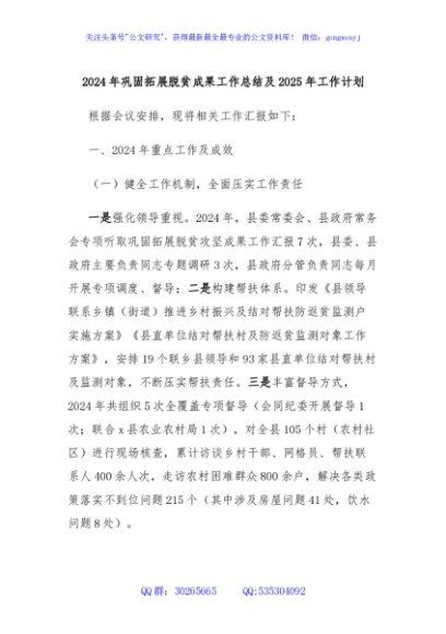 / 2024年巩固拓展脱贫成果工作总结及2025年工作计划