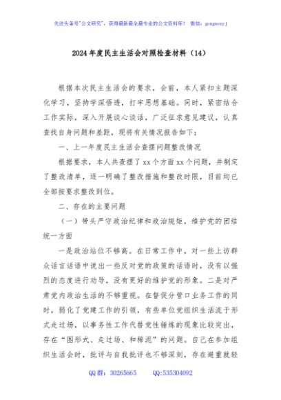 【参考材料】党内主题教育专题生活会六个方面查摆问题素材(316条)