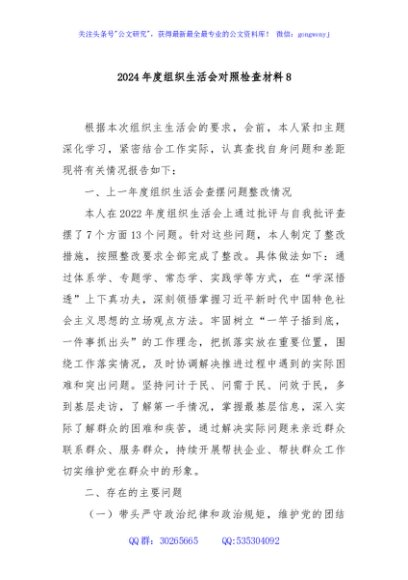 2024年度领导干部民主生活会乡镇班子对照检查发言材料
