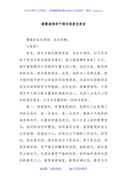 / 新提拔领导干部任职表态发言