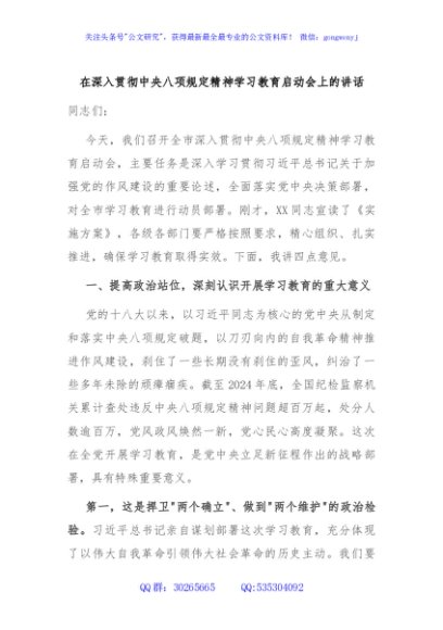 / 在深入贯彻中央八项规定精神学习教育启动会上的讲话