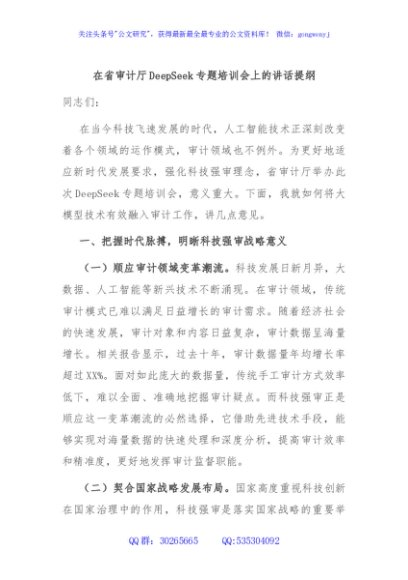 / 在省审计厅DeepSeek专题培训会上的讲话提纲