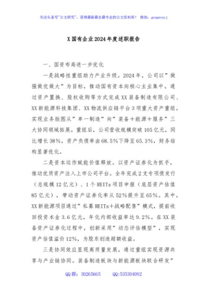 X国有企业2024年度述职报告