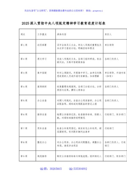 / 2025深入贯彻中央八项规定精神学习教育进度计划表