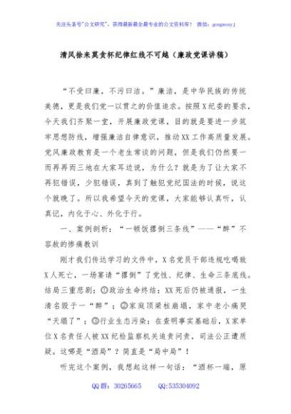 / 清风徐来莫贪杯纪律红线不可越(廉政党课讲稿)