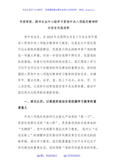 / 市委常委、副市长在中心组学习贯彻中央八项规定精神研讨发言交流材料