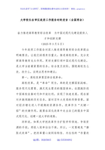 / 大学校长在审议政府工作报告时的发言(全国两会)
