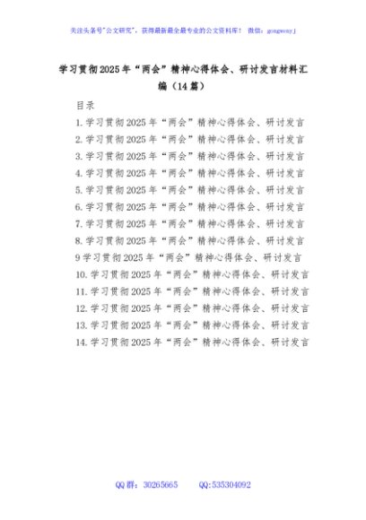 / (14篇)学习贯彻2025年“两会”精神心得体会、研讨发言材料汇编